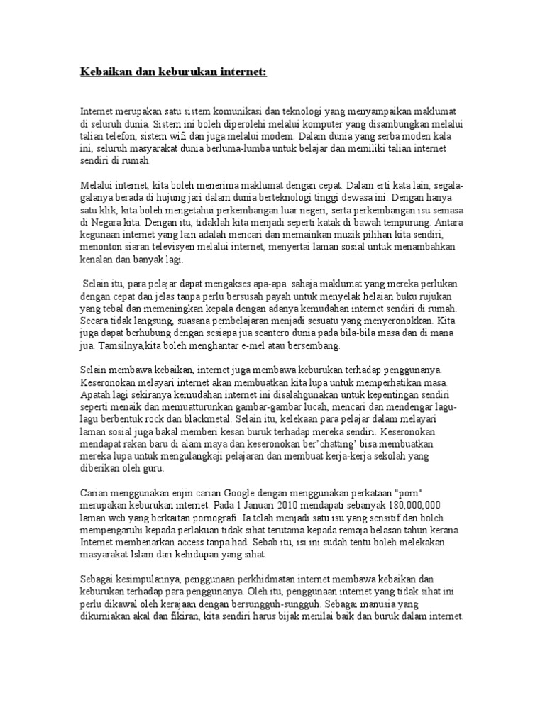 Kesan buruk penggunaan media sosial kepada remaja. Kebaikan Dan Keburukan Laman Sosial Ada saja kebaikan dan juga keburukan setiap sesuatu perkhidmatan itu dan hari ini kita kongsi maklumat terkini berkaitan baik buruk berinternet Internet adalah suatu kemudahan dan jika disalahguna bukan mendatangkan kebaikan malah mengundang keburukanAkan tetapi tidak dapat dinafikan penggunaan internet adalah sesuatu yang perlu. Kebaikan Dan Keburukan Internet Muhammadaidiledham.